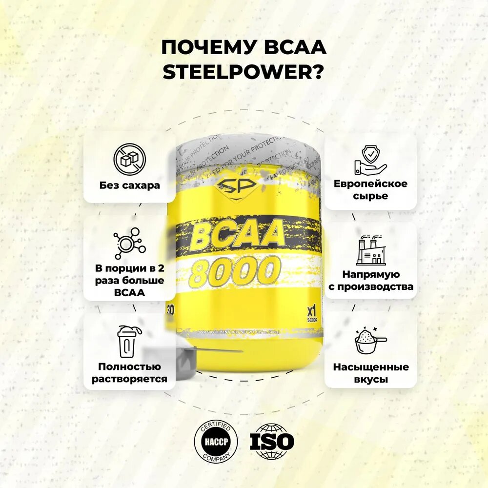 STEEL POWER BCAA 8000 300г (30 порций) (Энергетик)