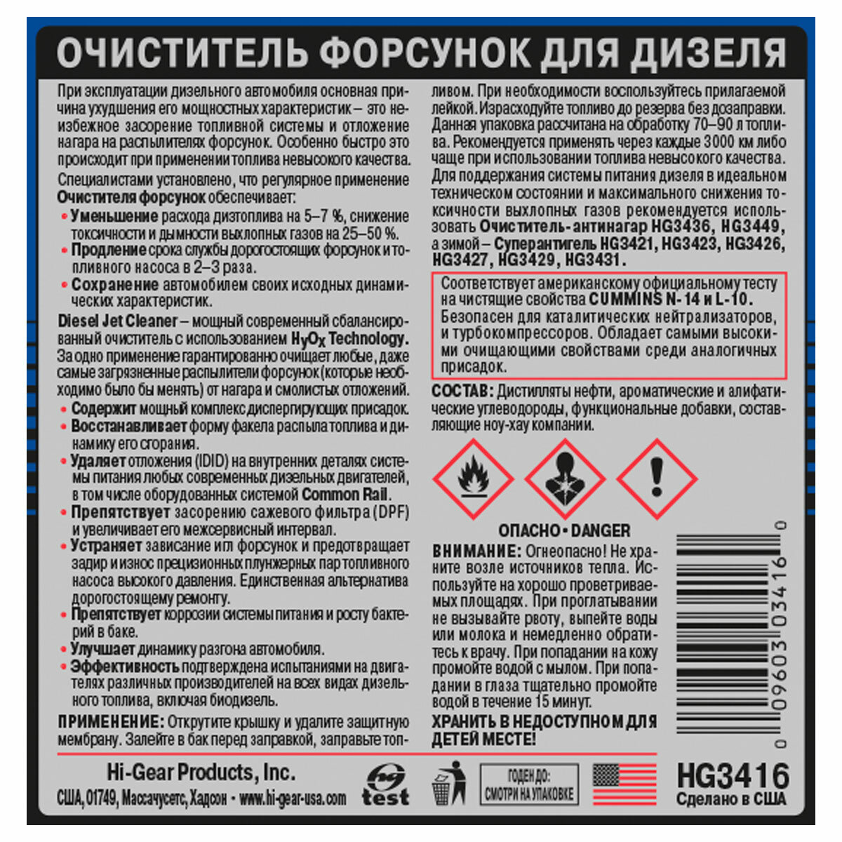 очиститель дизельных форсунок 325 мг hg3416 hi-gear