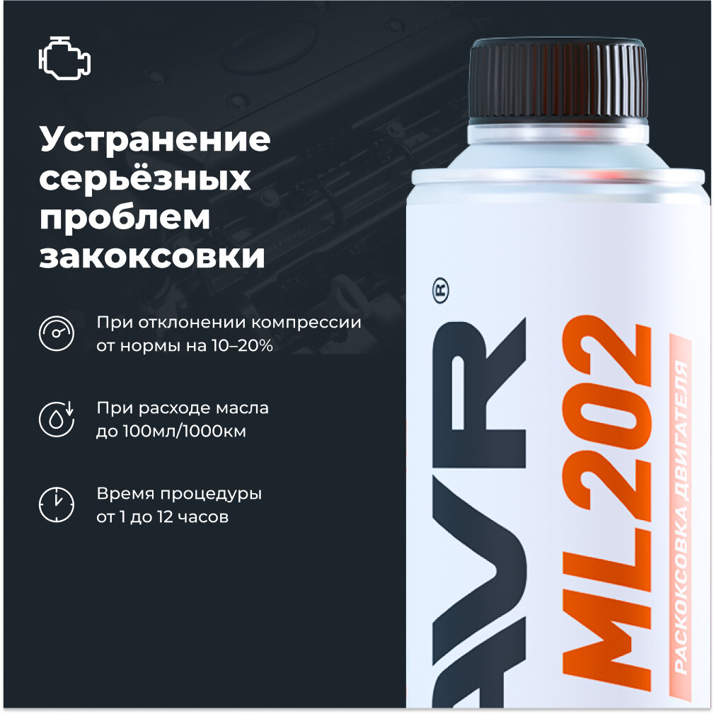 Раскоксовывание двигателя LAVR ML-202 комплект, 185 мл Ln2502 LAVR 1170080 .