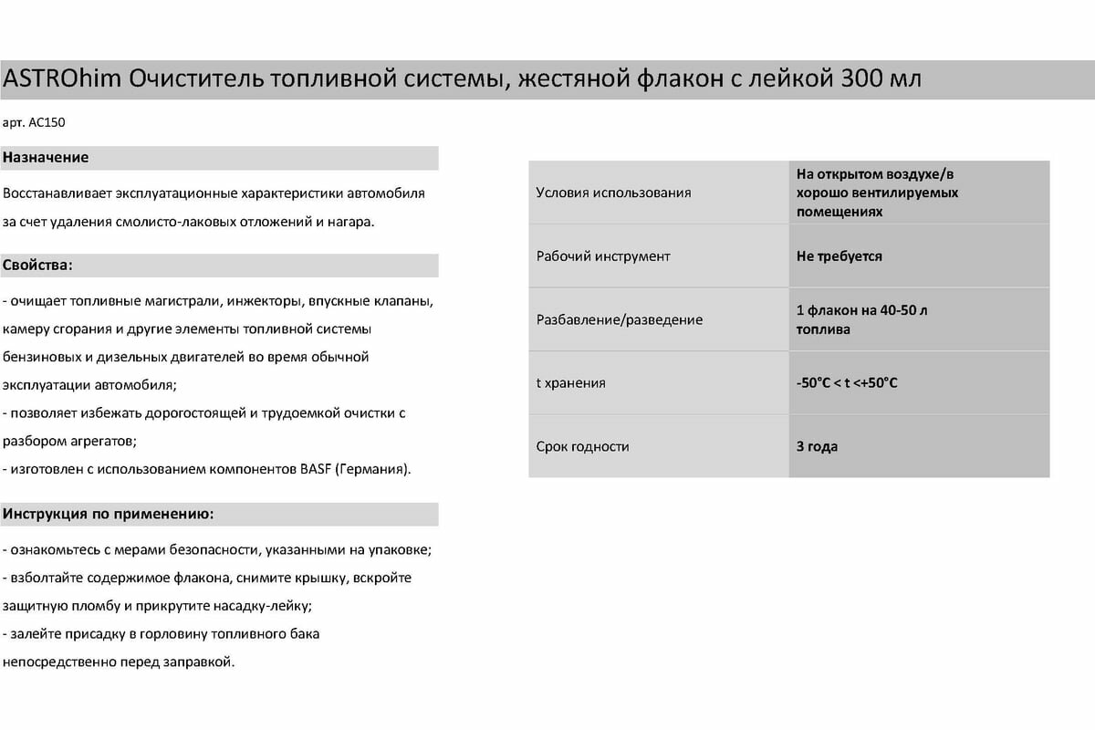 Купить Очиститель Топливной Системы 300 Мл Astrohim Ac150 ASTROHIM арт. AC-150