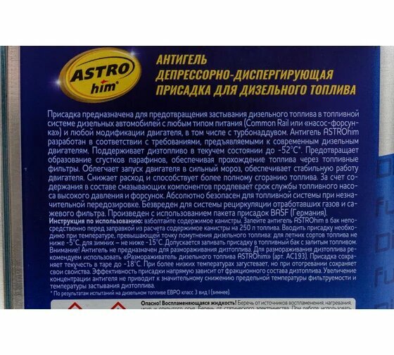 Антигель дизельного топлива (на 60-120л) 300мл ASTROhim
