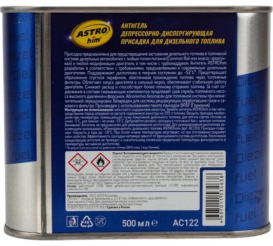 Антигель Дизтоплива Ж.б.(500Мл) Ас-122 Астрохим * ASTROHIM арт. AC122