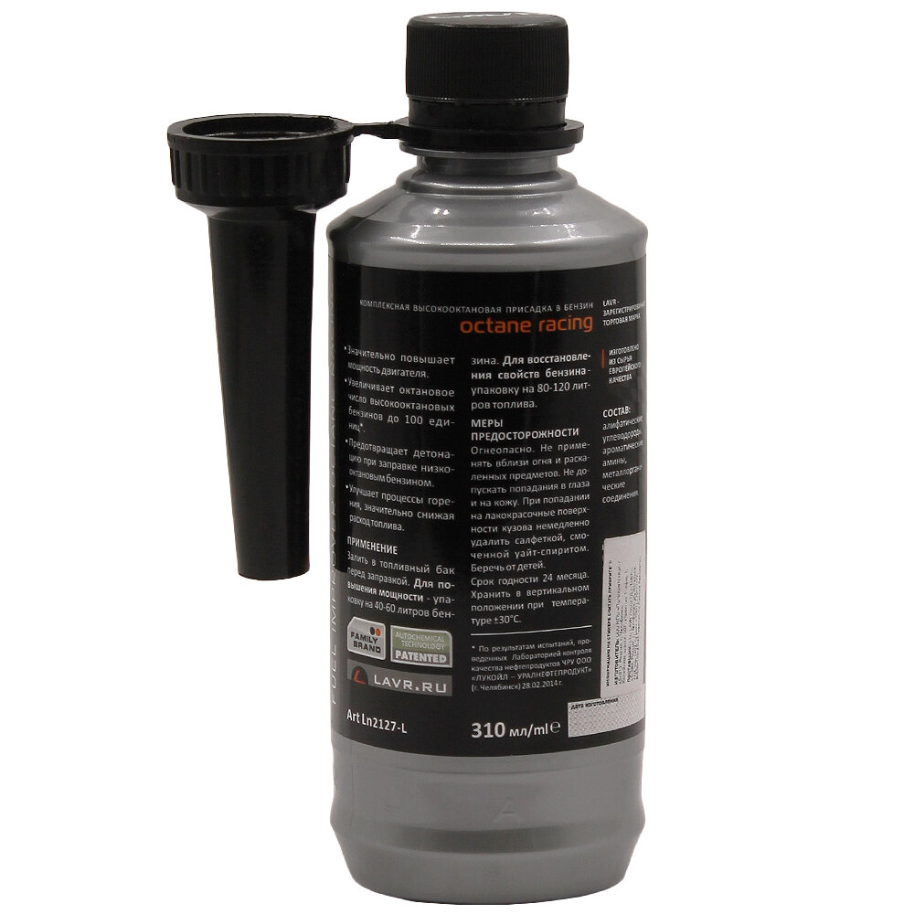 Усилитель моторного топлива Lavr Octane Racing, присадка в бензин, увеличивает октановое число, бутылка с насадкой 310мл, арт. Ln2127-L
