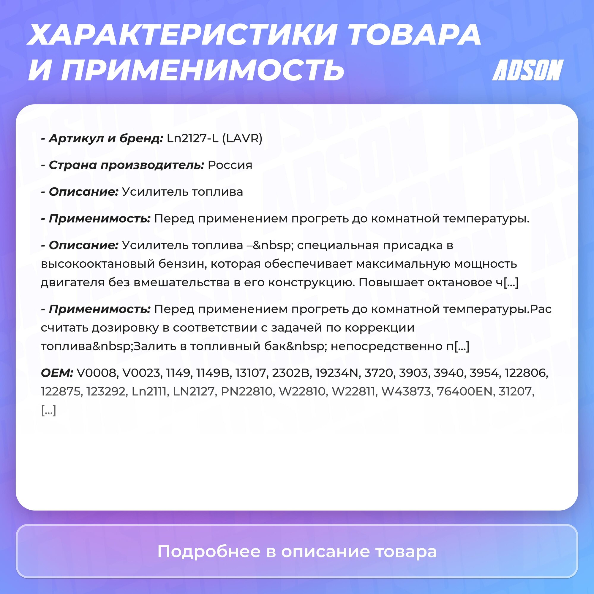Усилитель Моторного Топлива LAVR арт. Ln2127-L