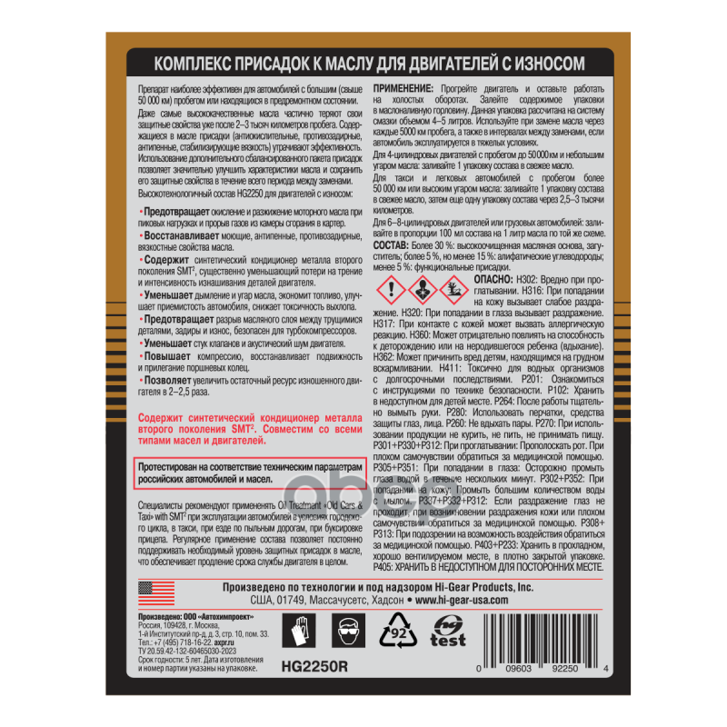 hg2250_=hg2243 !444ml\ комплекс суперприсадок с smt к маслу для изношенных двигателей
