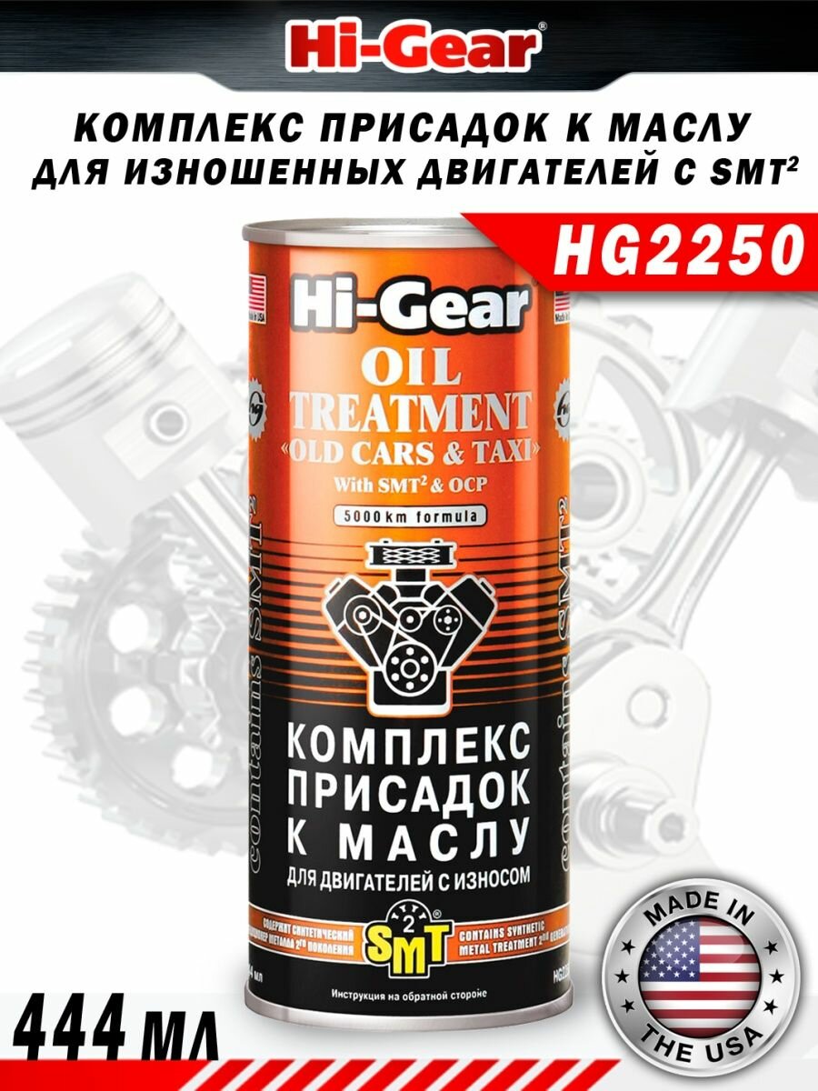 Присадка в моторное масло Hi-Gear Oil Treatment, комплексная, для изношенных бензиновых и дизельных двигателей, с кондиционером металла SMT², банка 444мл, арт. HG2250