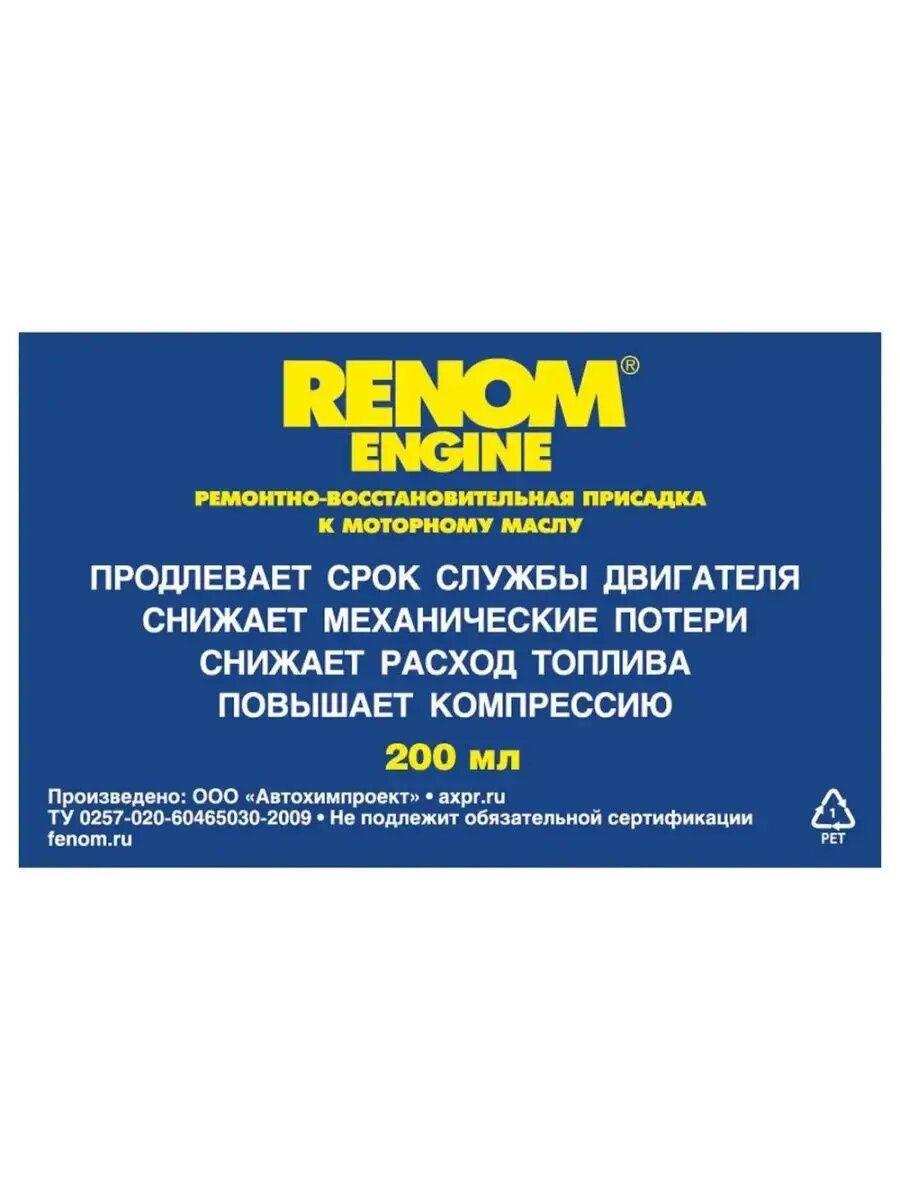 Ремонтно-восстановительная присадка в моторное масло Fenom Renom Engine, для бензиновых и дизельных двигателей, бутылка 200мл, арт. FN710