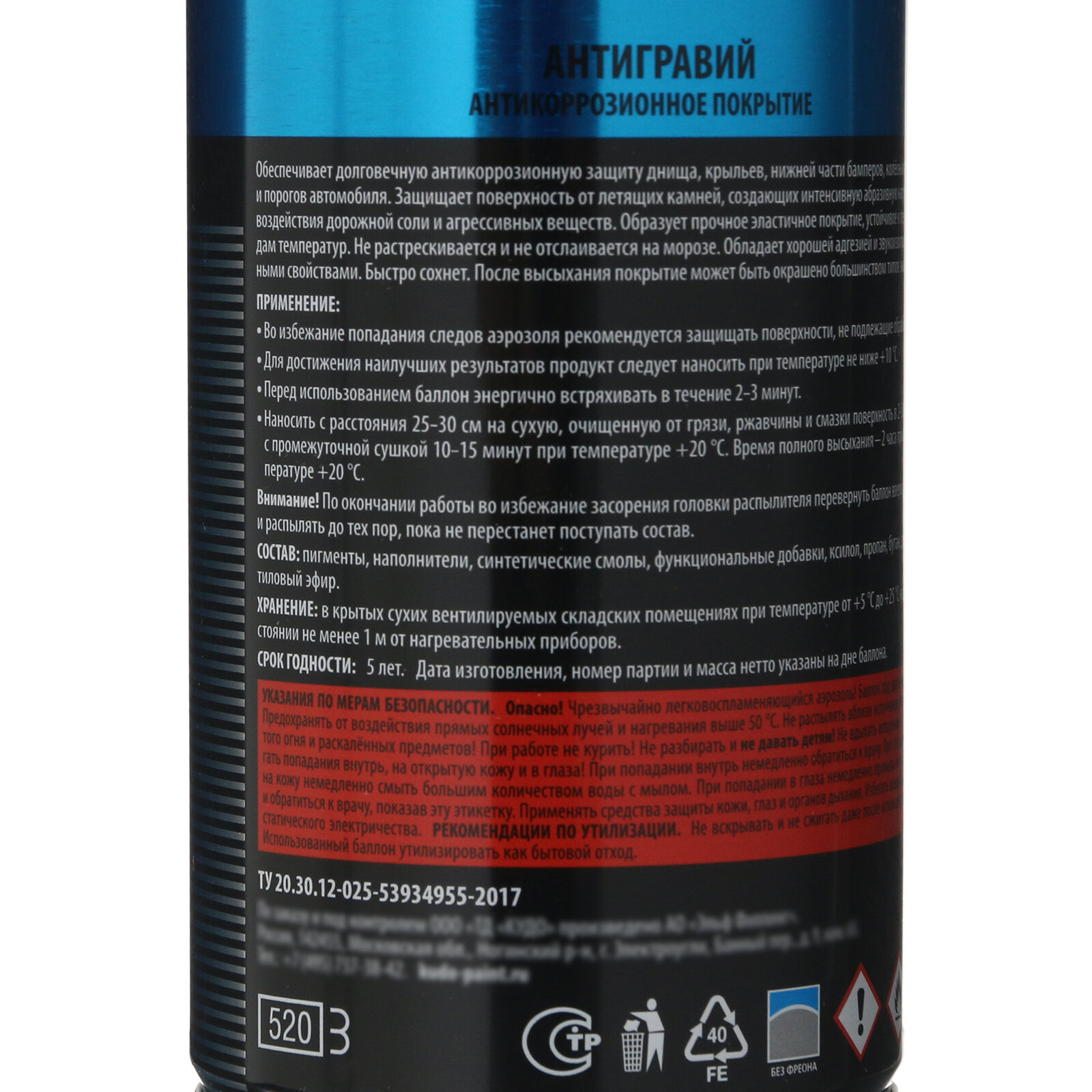 Антигравий KUDO, 520 мл, серый, аэрозоль 4524978 KU-5221