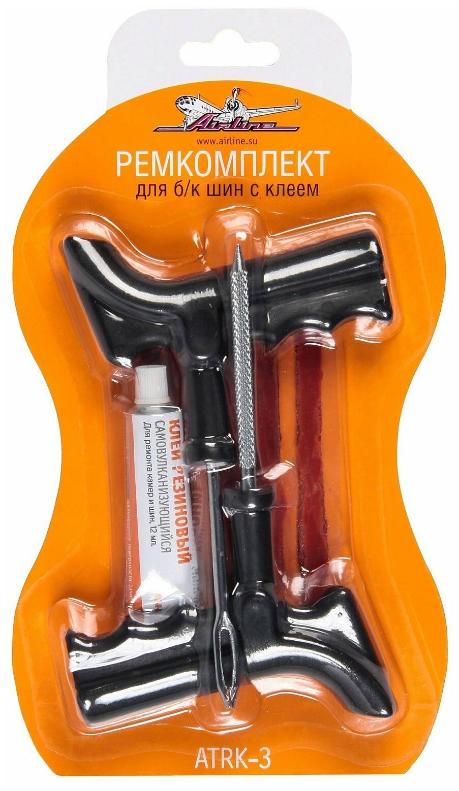 Ремкомплект для ремонта б/к шин с клеем-активатором AIRLINE, арт. ATRK-3