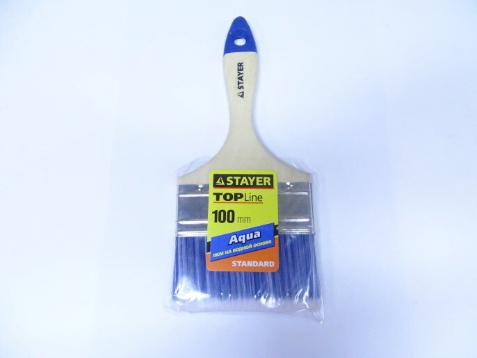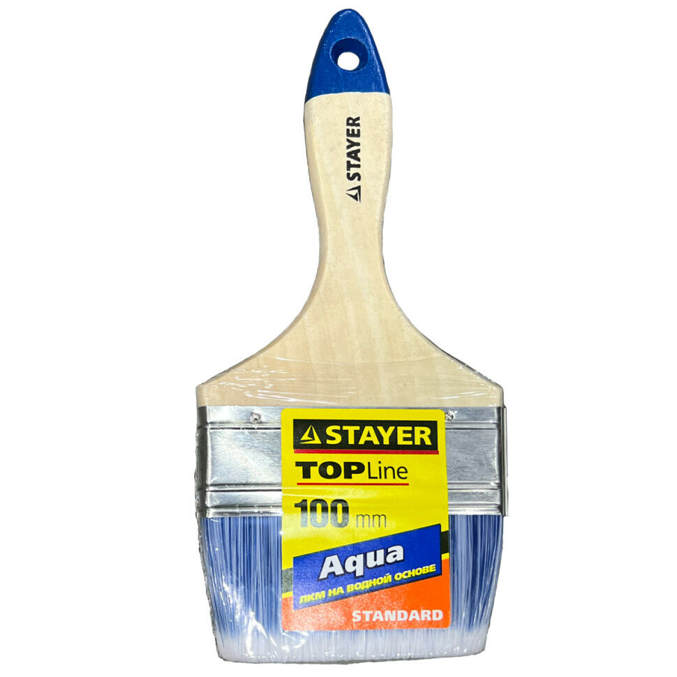 STAYER AQUA 100 мм, 4″ искусственная щетина, деревянная ручка, Плоская кисть, STANDARD (01032-100)
