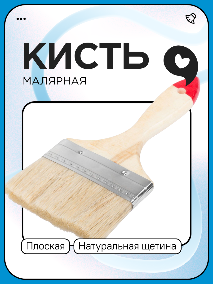 Кисть флейцевая "Стандарт", натур.светлая щетина, деревянная ручка 4" (100 мм)
