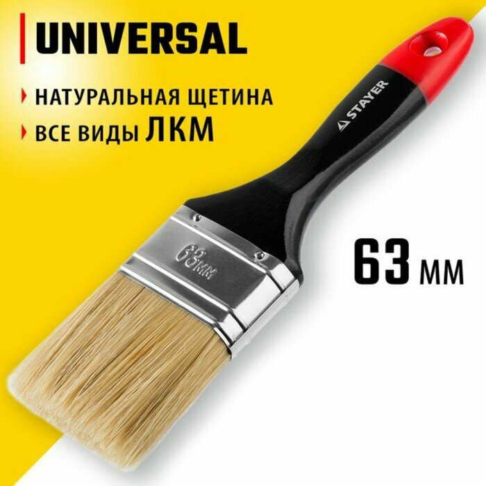 Кисть плоская STAYER UNIVERSAL-PROFI, светлая натуральная щетина, деревянная ручка, 63мм