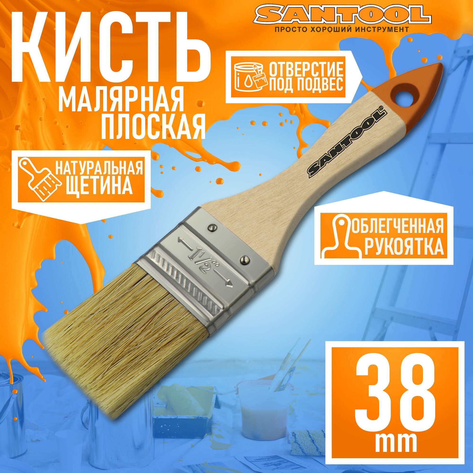 Купить Кисть малярная SANTOOL "лайт" плоская, натуральная щетина, деревянная ручка 1,5" (38 мм)