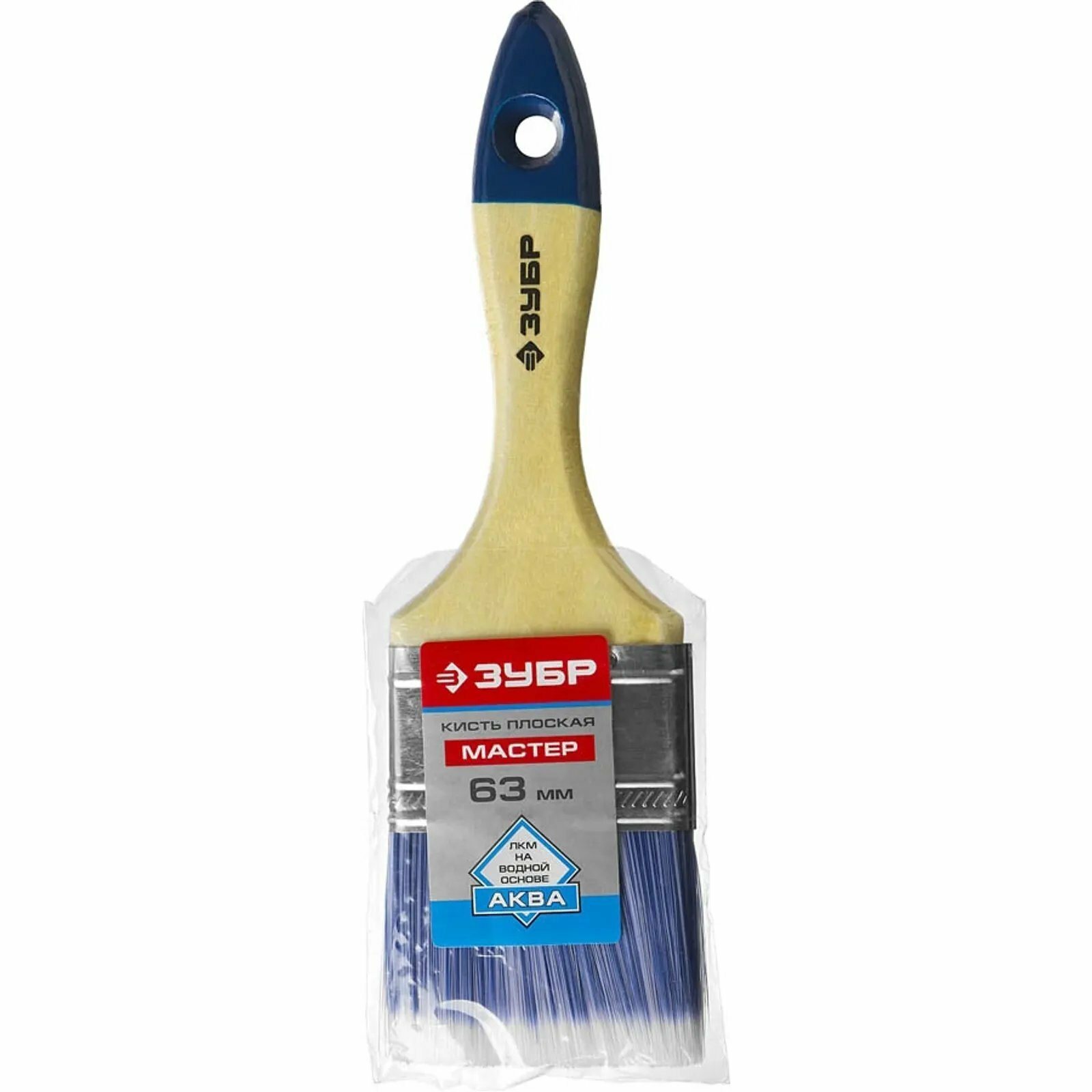 ЗУБР Аква 63 мм, 2,5 светлая искусственная щетина, деревянная ручка, Плоская кисть, мастер (4-01007-063)