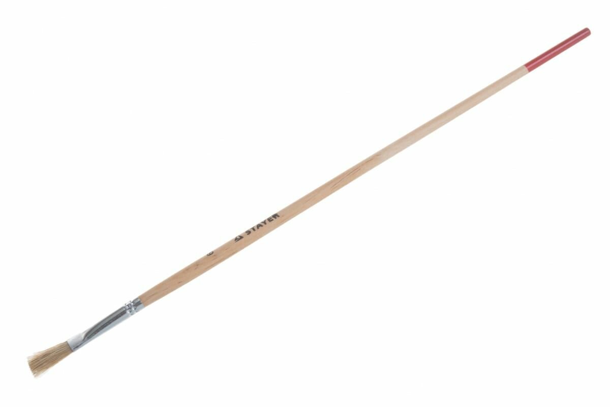 Малярная кисть STAYER UNIVERSAL, 8 мм, светлая натуральная щетина, деревянная ручка, все виды ЛКМ, плоская тонкая кисть (0124-06)