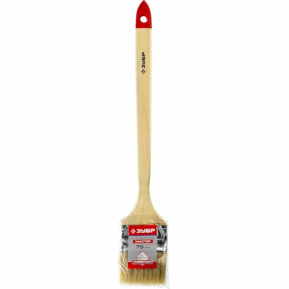 ЗУБР универсал 75 мм, 3" светлая натуральная щетина, деревянная ручка, Радиаторная кисть, мастер (01041-075)