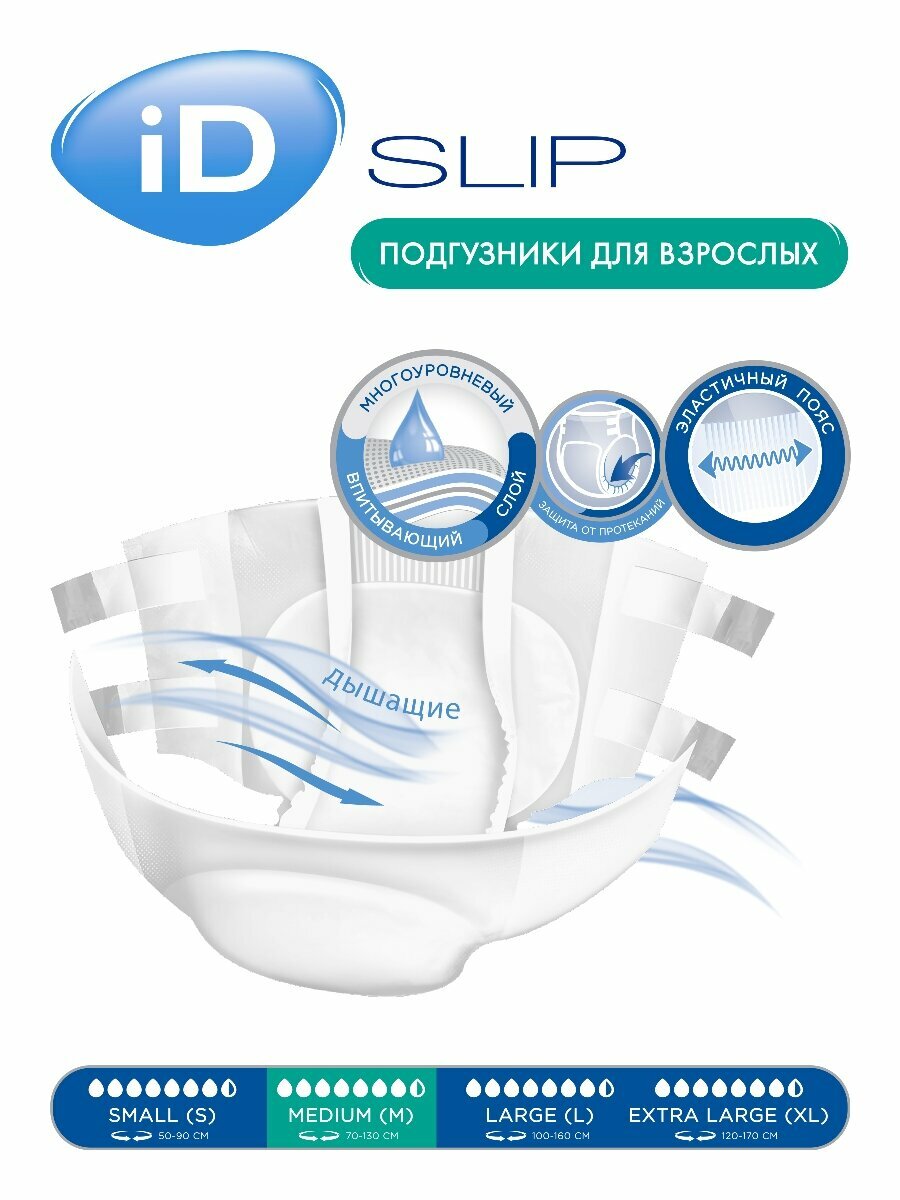 Подгузники для взрослых iD Slip Super, M, 7.5 капель, 70-130 см, 1 уп. по 30 шт.