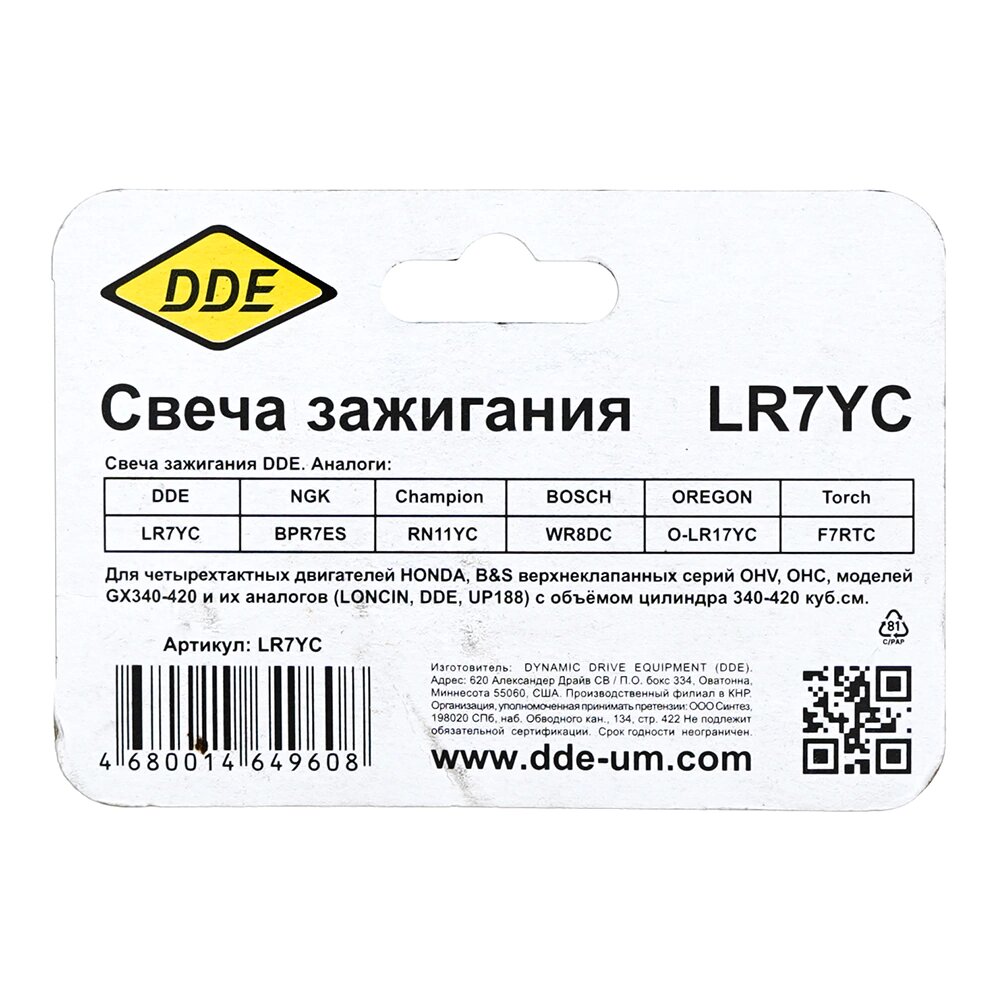 Свеча зажигания DDE Lr7yc .