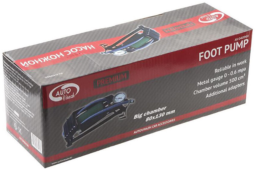 Насос ножной "AUTOVIRAZH" (усилен. цилиндр 80х130мм, с манометром, одинарный, метал. наконечник)