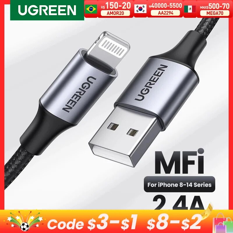 Ниже Вы можете прочитать отзывы на USB-кабель UGREEN MFi Lightning, 2,4 А, для быстрой зарядки и подсветки для iPhone, Aluminum Grey, 2m, ознакомится с подробными характеристиками, посмотреть интересные обзоры и фотографии на USB-кабель UGREEN MFi Lightning, 2,4 А, для быстрой зарядки и подсветки для iPhone, Aluminum Grey, 2m.