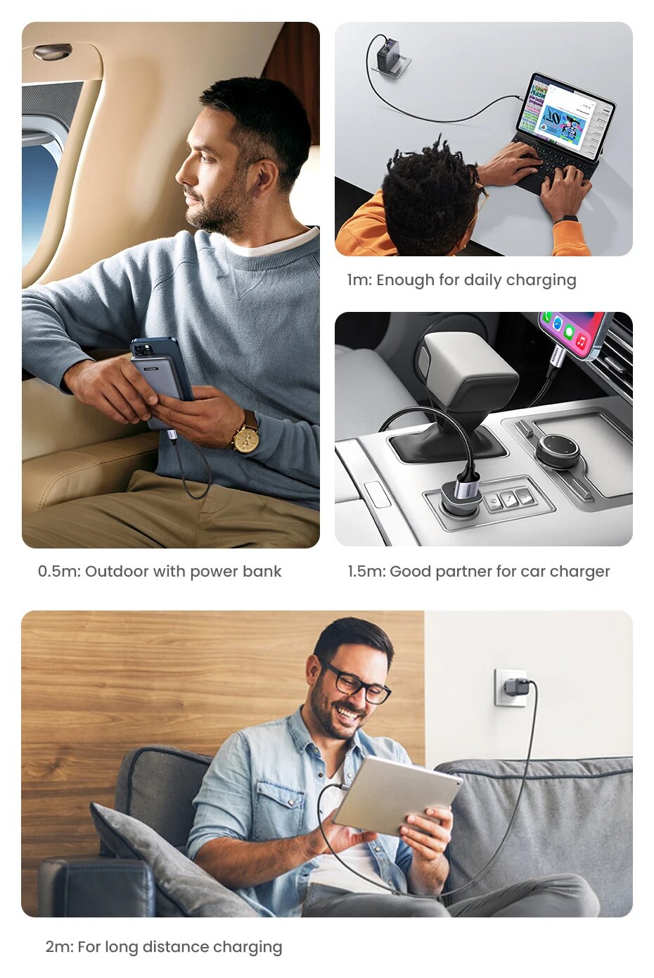 USB-кабель UGREEN MFi Lightning, 2,4 А, для быстрой зарядки и подсветки для iPhone, Aluminum Grey, 2m интересное: