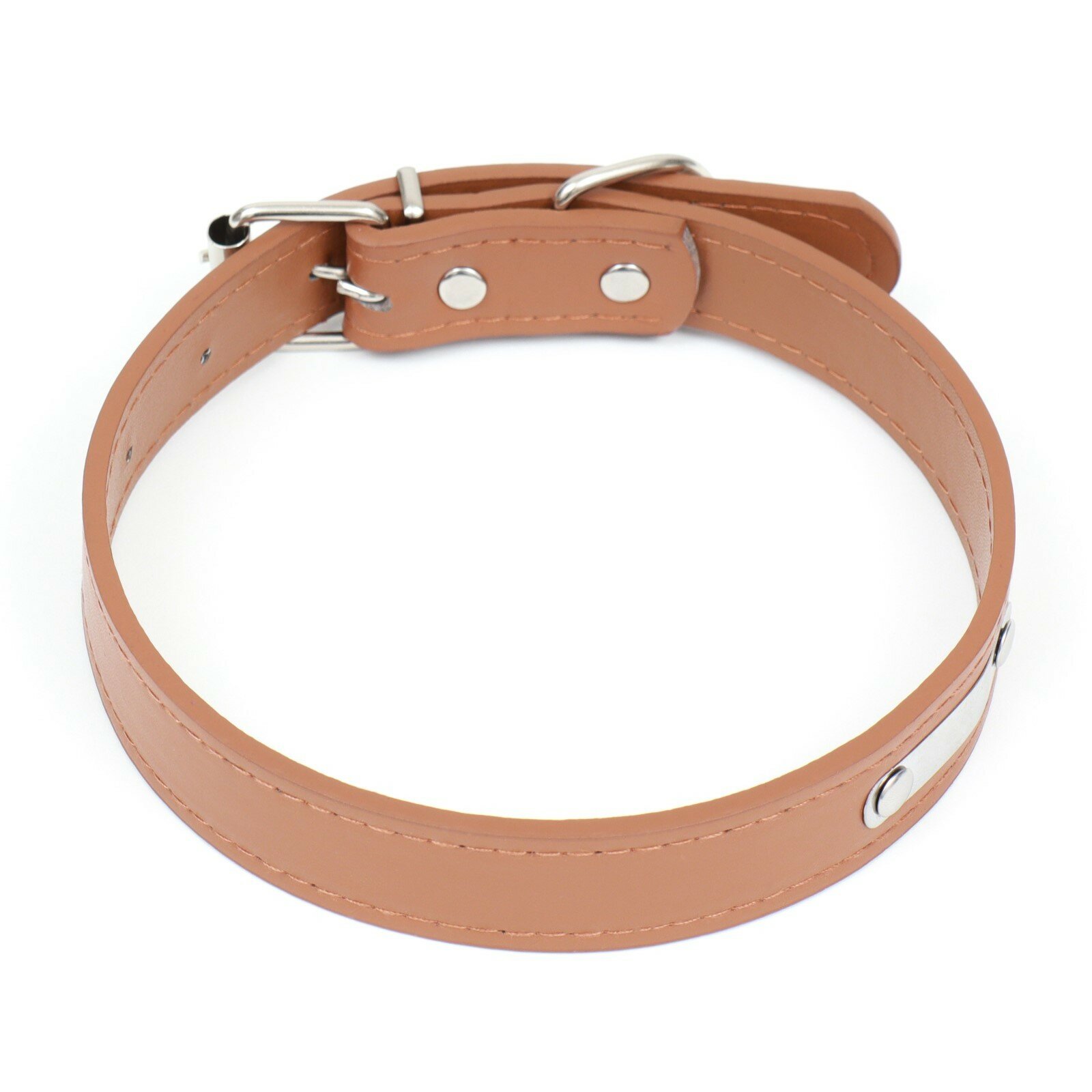 Купить Ошейник из искусственной кожи с шильдом под гравировку, 52 х 2,5 см, ОШ 35-45 см, коричневый