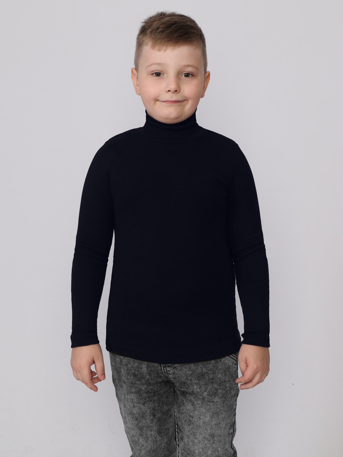 Водолазка школьная трикотажная в рубчик для мальчика и девочки FM унисекс кашкорсе черный (128)