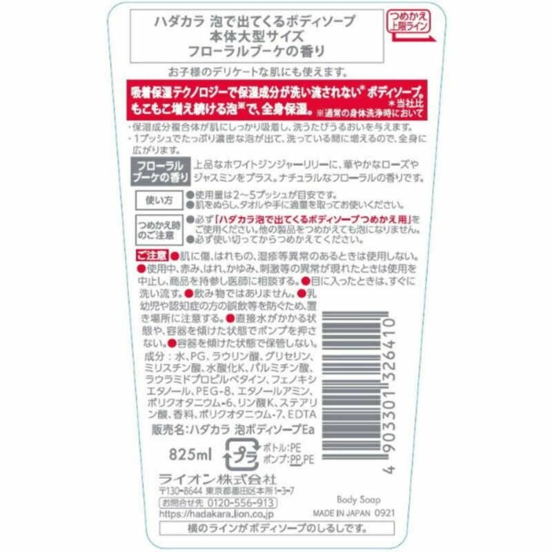 Купить LION Бархатное увлажняющее мыло-пенка для тела "Hadakara" с ароматом букета цветов (для нормальной кожи) 825 мл, флакон