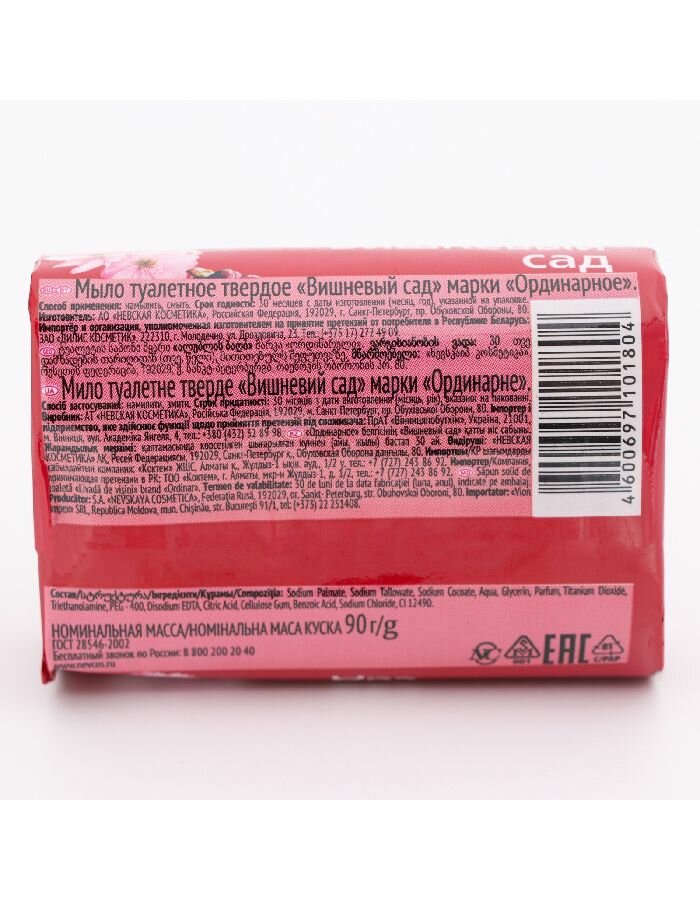 Мыло кусковое Невская Косметика Вишнёвый сад, 90 мл, 90 г