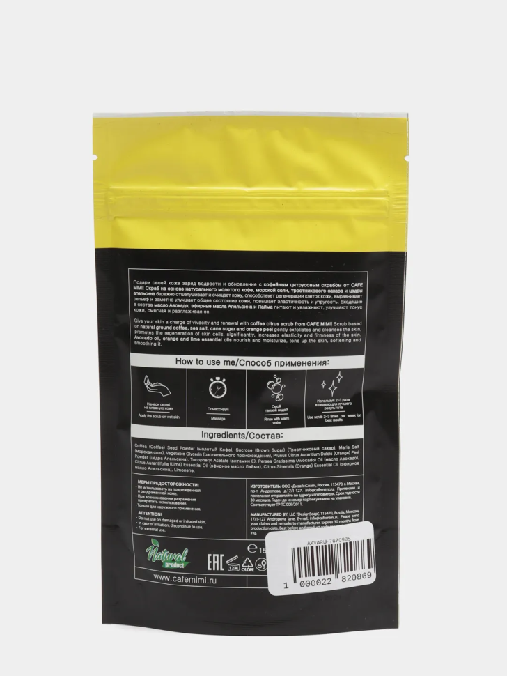 CAFÉ MIMI, Скраб для тела, Кофе и Цитрус, 150 г
