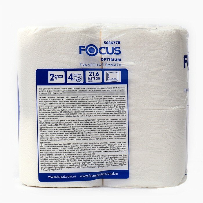 Туалетная бумага FOCUS HAYAT OPTIMUM двухслойная (2 слоя), 4 рулона по 22 метра, арт. 5036770