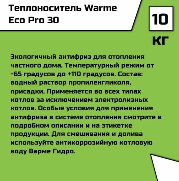 Теплоноситель Warme Eco Pro 30 (10 кг)анистра 10 кг