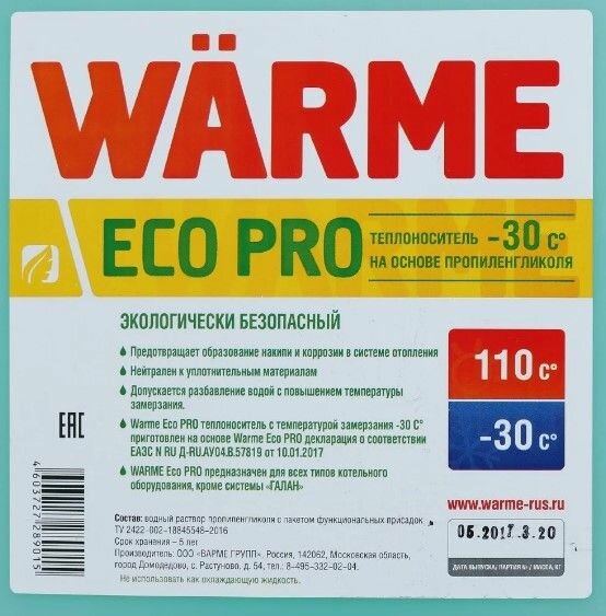 Ниже Вы можете прочитать отзывы на Антифриз для систем отопления WARME ECO PRO 30 - канистра 10 кг., ознакомится с подробными характеристиками, посмотреть интересные обзоры и фотографии на Антифриз для систем отопления WARME ECO PRO 30 - канистра 10 кг..