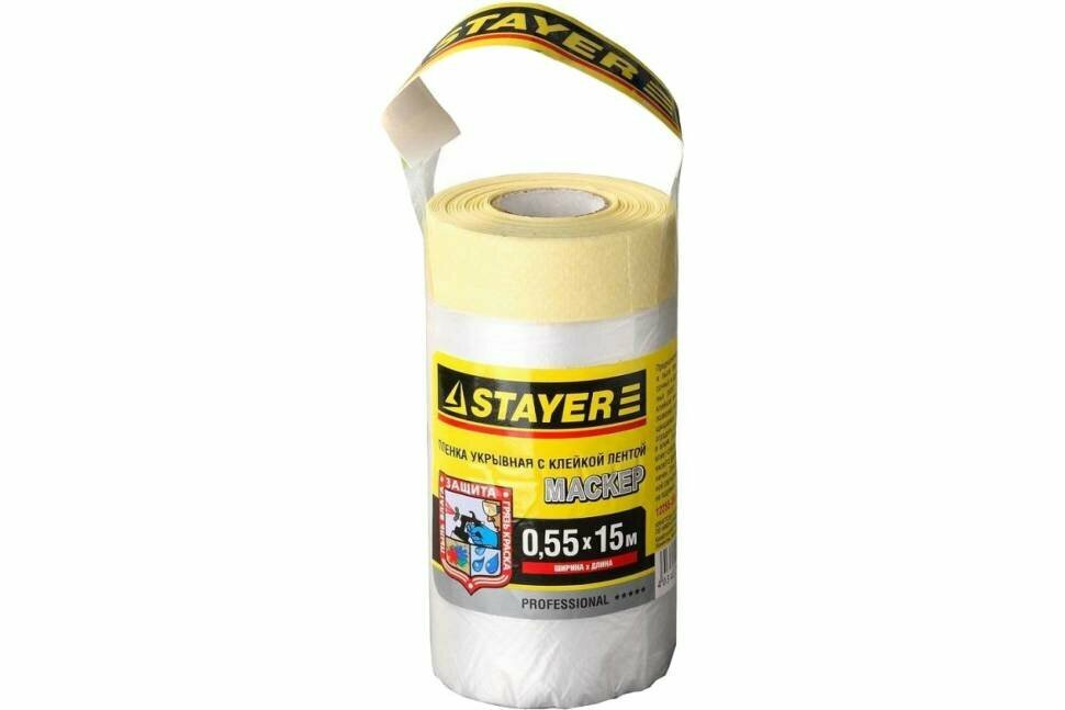 Пленка STAYER ″PROFESSIONAL″ защитная с клейкой лентой ″маскер″, HDPE, 9мкм, 0,55х15м (12255-055-15)