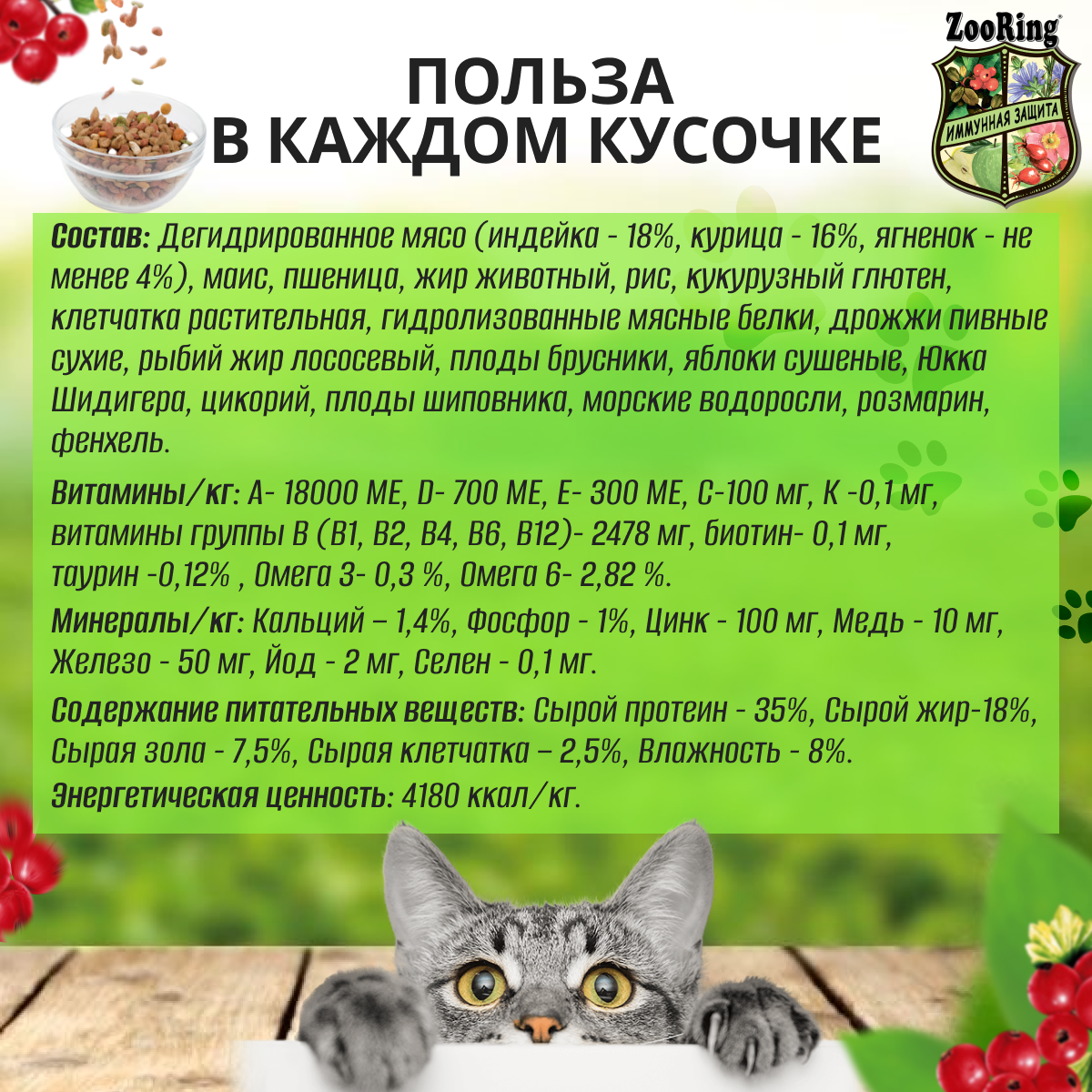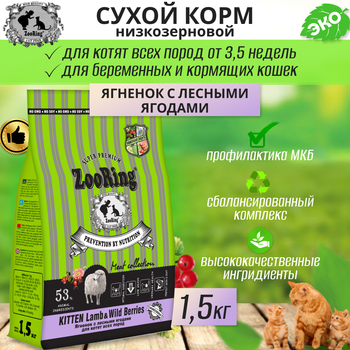Сухой корм ZooRing KITTEN ягненок с лесными ягодами для котят, 1,5кг