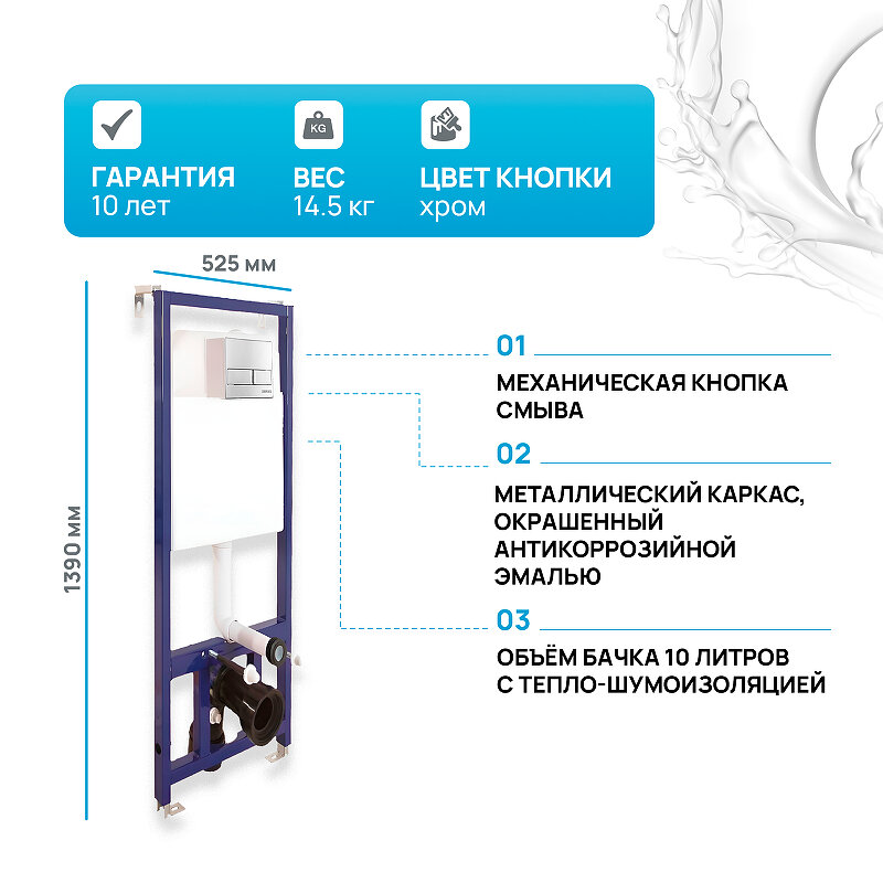 СохранитьBerges Инсталляция для скрытого монтажа унитаза NOVUM кнопка L3 хром глянец549548 040213 интересное: