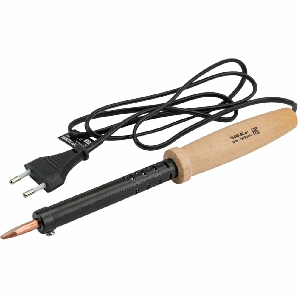 ЗУБР 80 Вт, клин, электропаяльник с деревянной рукояткой (55405-80)