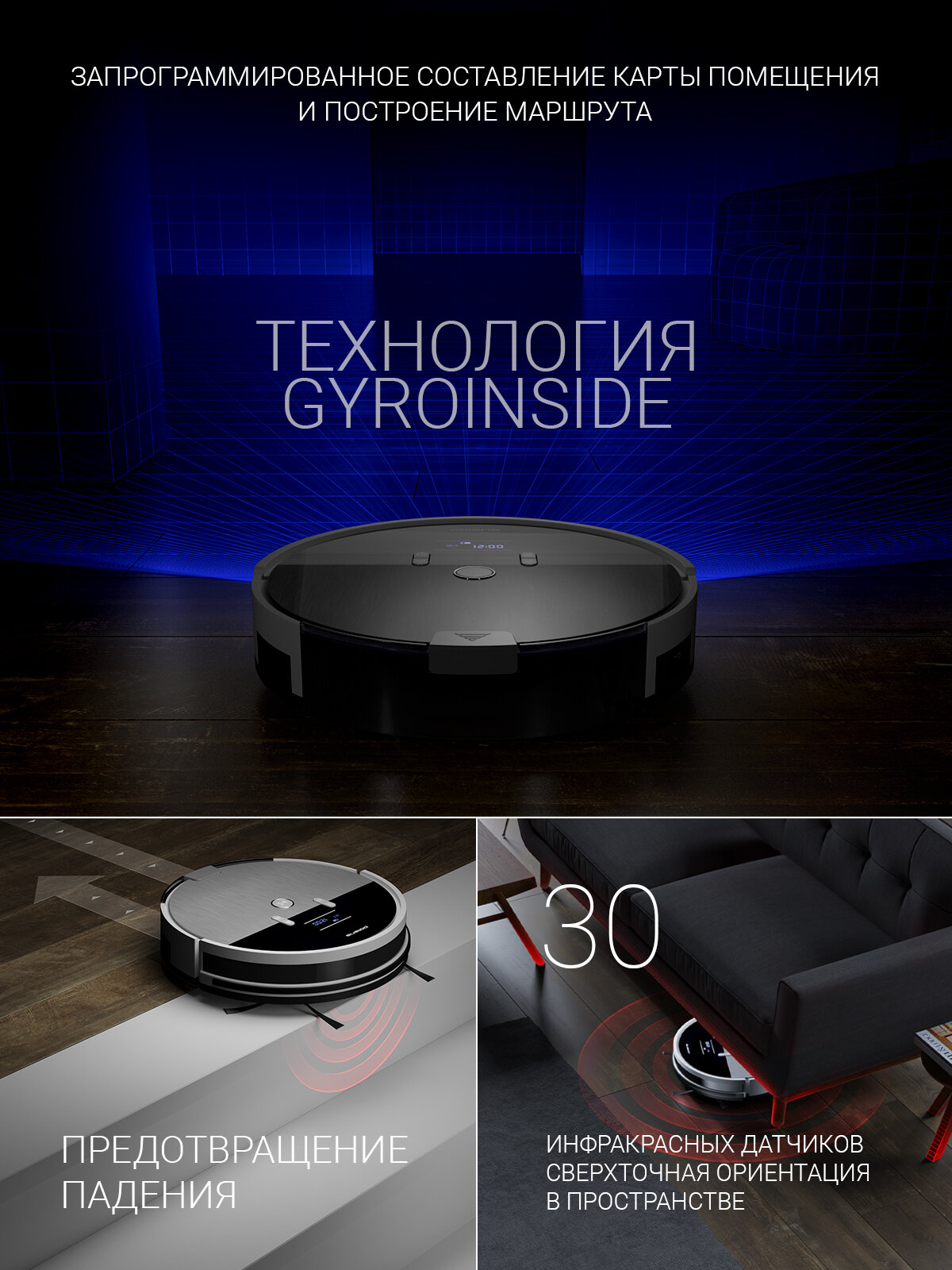 | Плюсы: | Продвинутая модель на 8 режимов уборки, мягкий бампер, при застревании издаёт сигнал. |