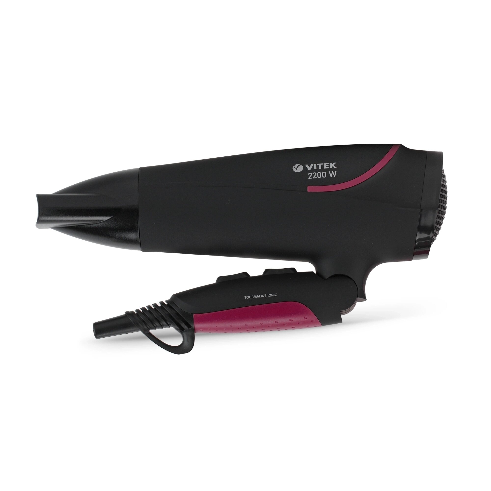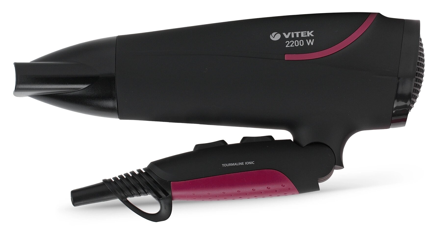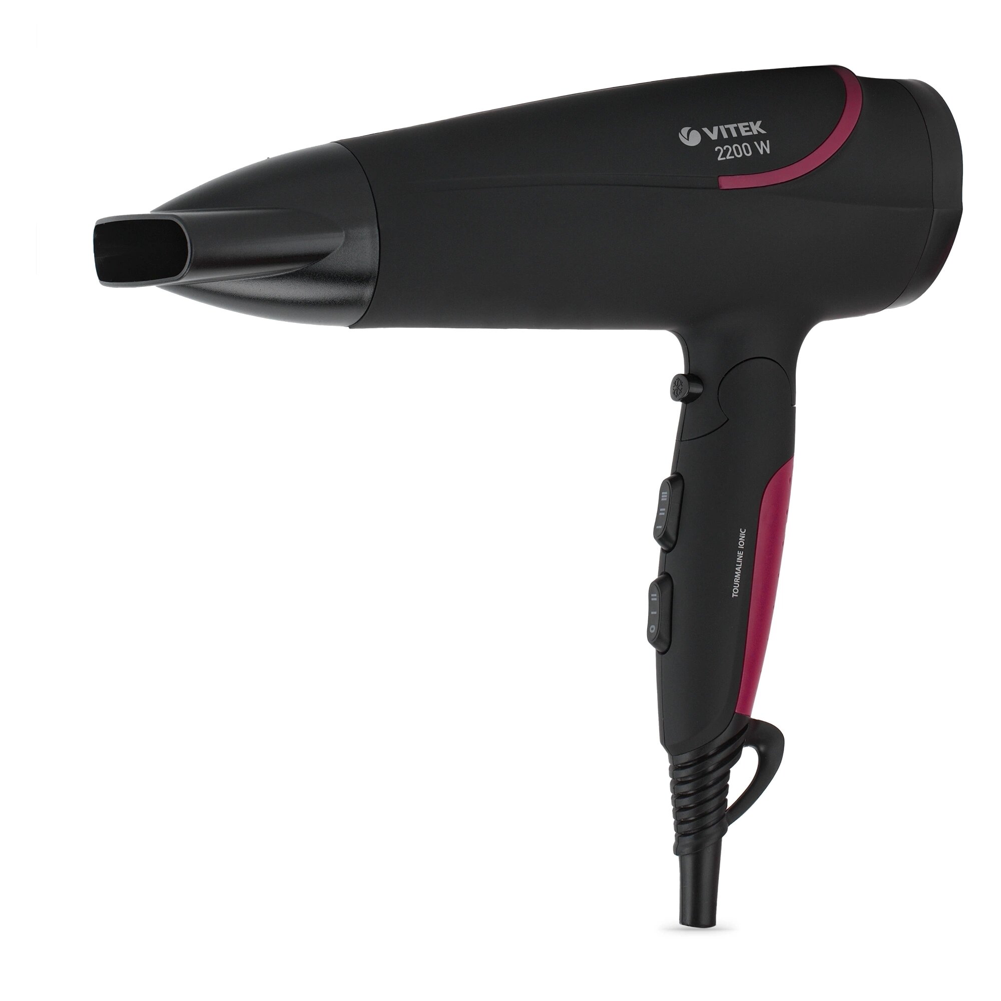 Фен Vitek VT-8226 черный/розовый, полноразмерный, 2200 Вт, подача холодного воздуха, турмалиновая ионизация, шнур - 1.8 м