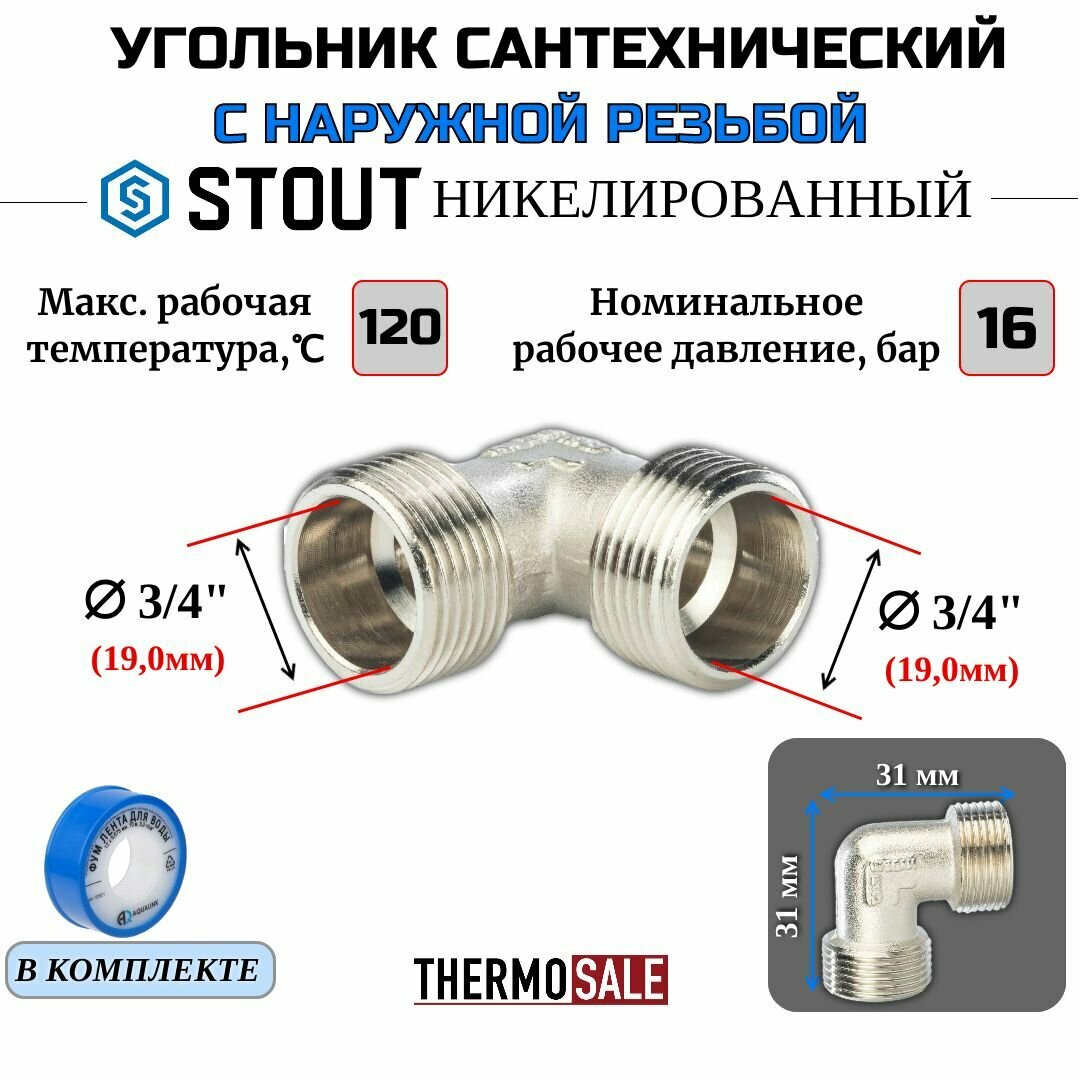 Угольник никелированный 3/4" НР, Stout SFT-0010-000034