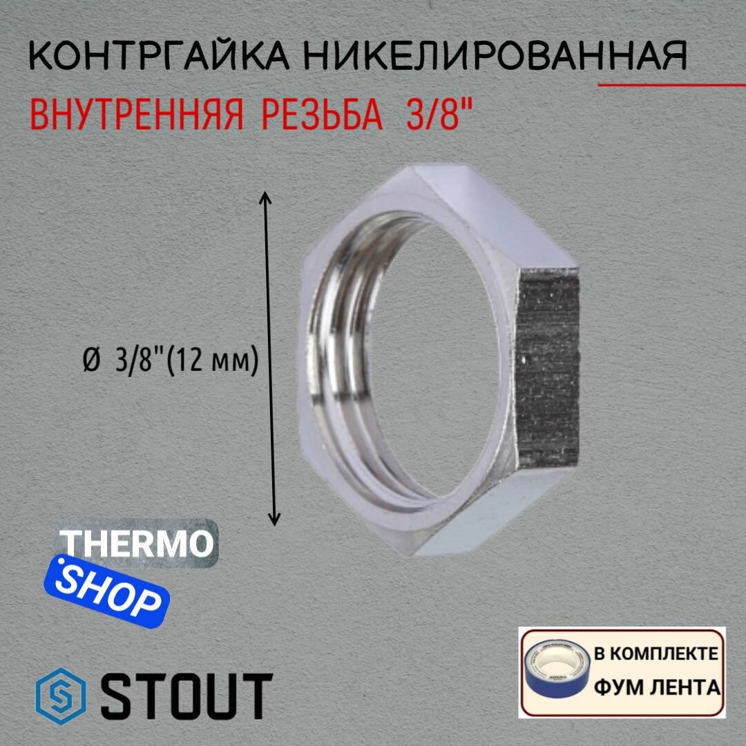 Купить Контргайка никелированная 3/8" для труб сантехническая ФУМ лента