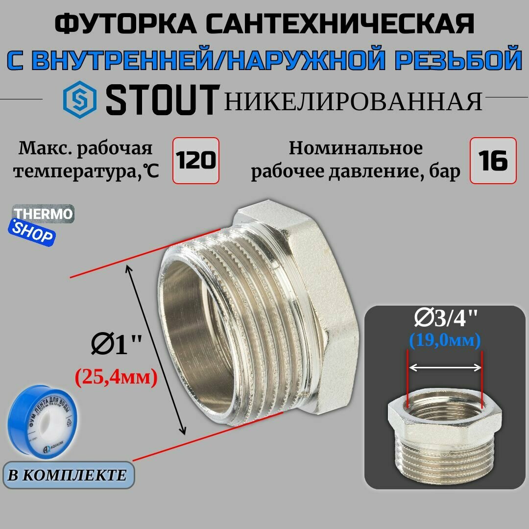 Футорка никелированная 1"X3/4" STOUT (SFT-0029-000134)
