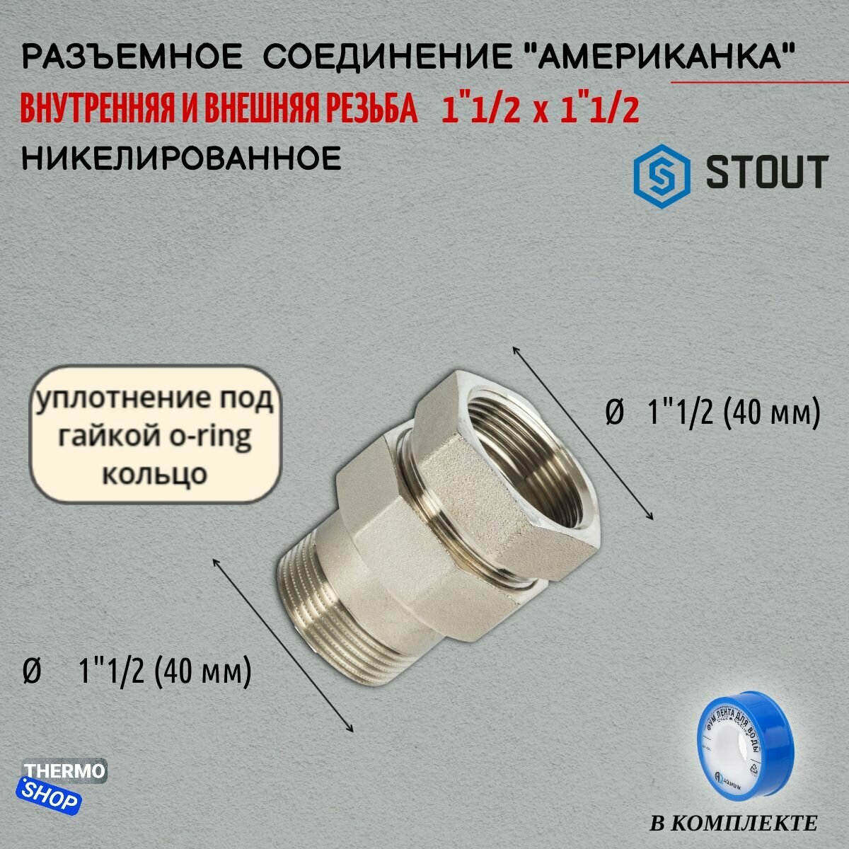 Разъемное соединение "американка" ВН никелированное, уплотнение под гайкой o-ring кольцо 1"1/2 STOUT SFT-0041-000112