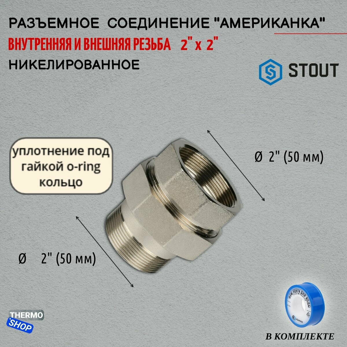 Разъемное соединение "американка" ВН никелированное, уплотнение под гайкой o-ring кольцо 2" STOUT SFT-0041-000002