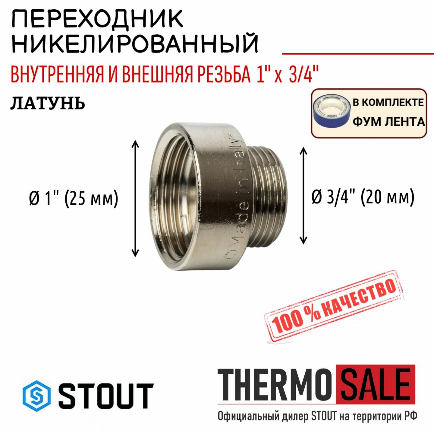 Купить Переходник внутренний/наружный 1"х3/4" никелированный STOUT SFT-0008-000134