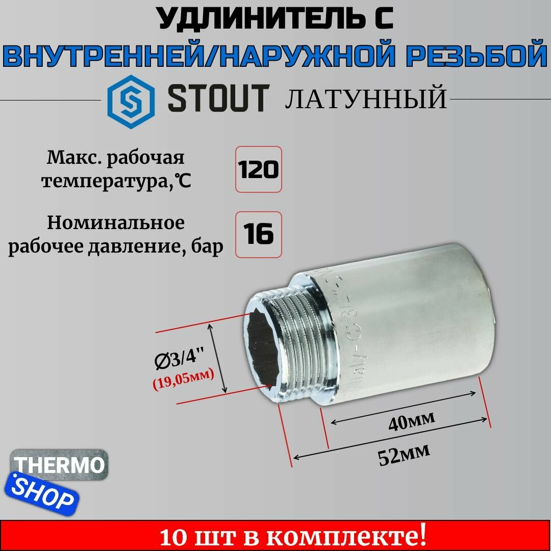 Фитинг резьба удлинитель STOUT SFT-0002-003410 3/4"x3/4"