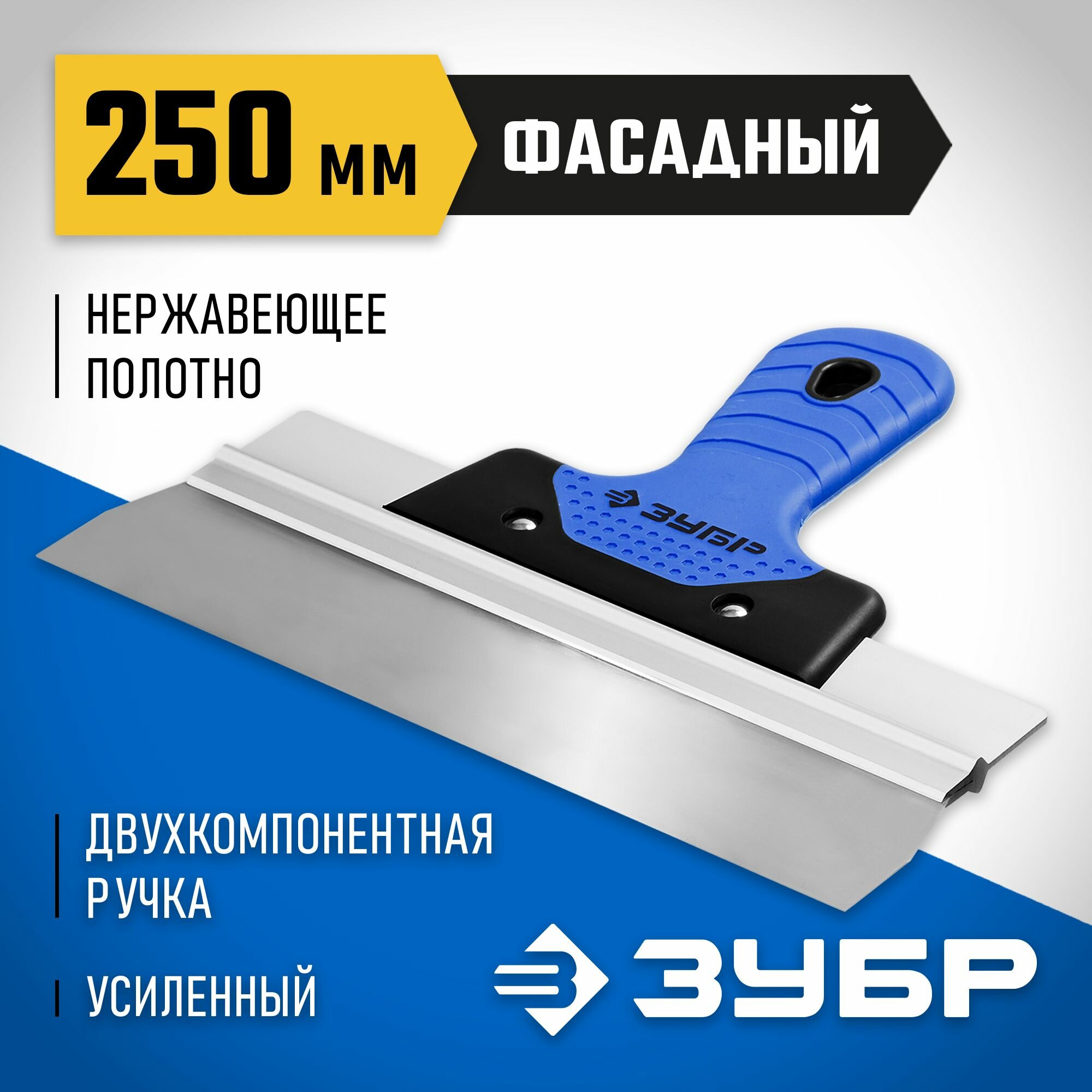 фасадный нержавеющий шпатель ЗУБР Профессионал X-PRO 250 мм усиленная алюминиевая направляющая двухкомпонентная ручка ( 10049-25_z03 )