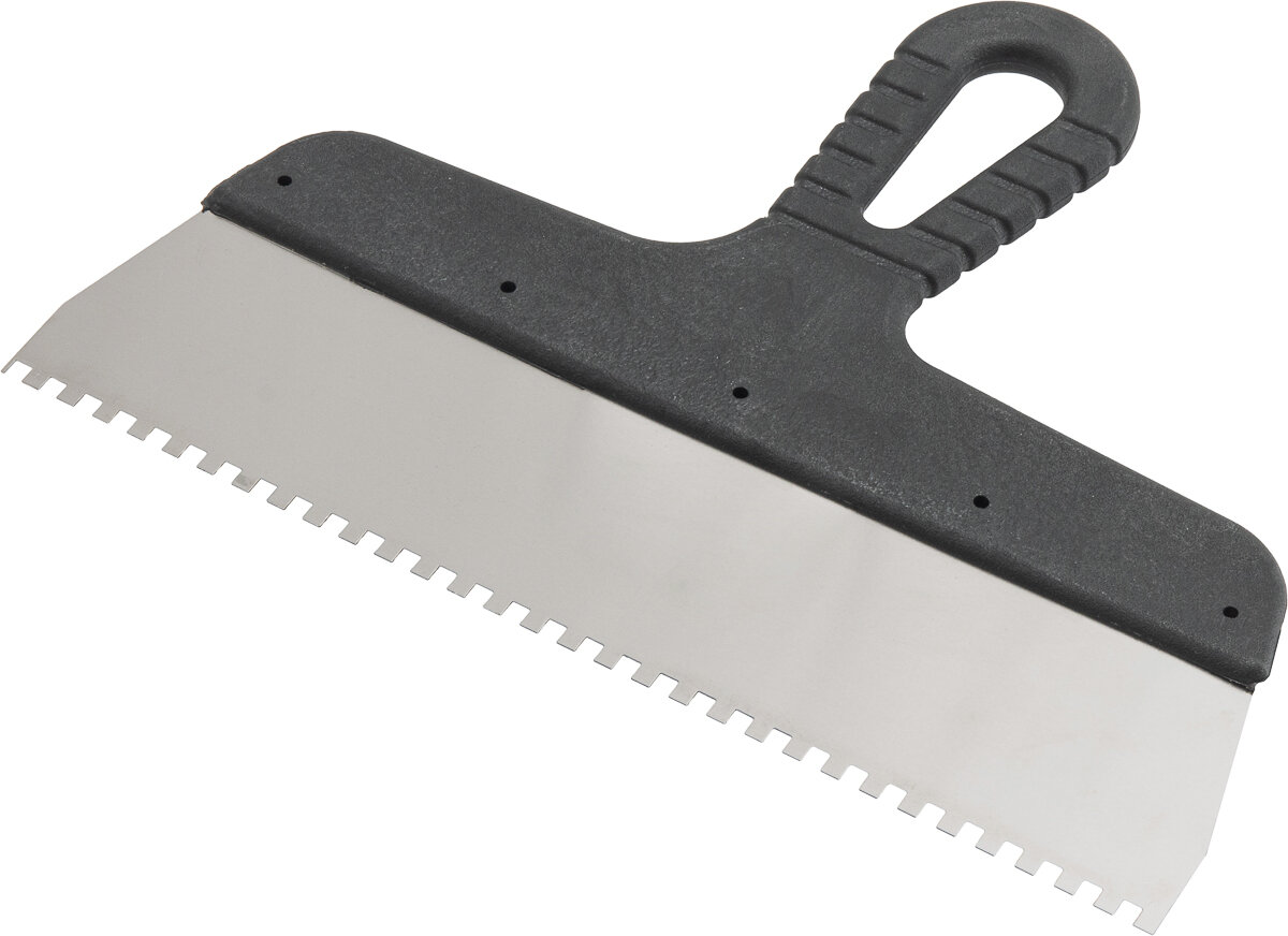 Шпатель зубчатый 10х10 мм, нержавеющая сталь, пластиковая рукоятка, 450 мм
