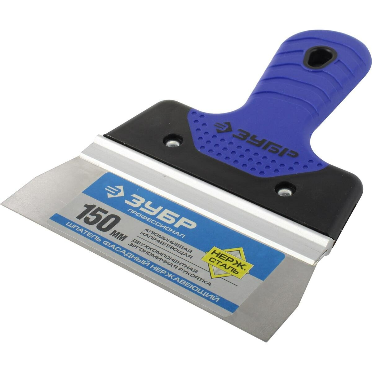 Фасадный шпатель нержавеющий ЗУБР Профессионал X-PRO 150 мм усиленная алюминиевая направляющая двухкомпонентная ручка ( 10049-15_z03 )