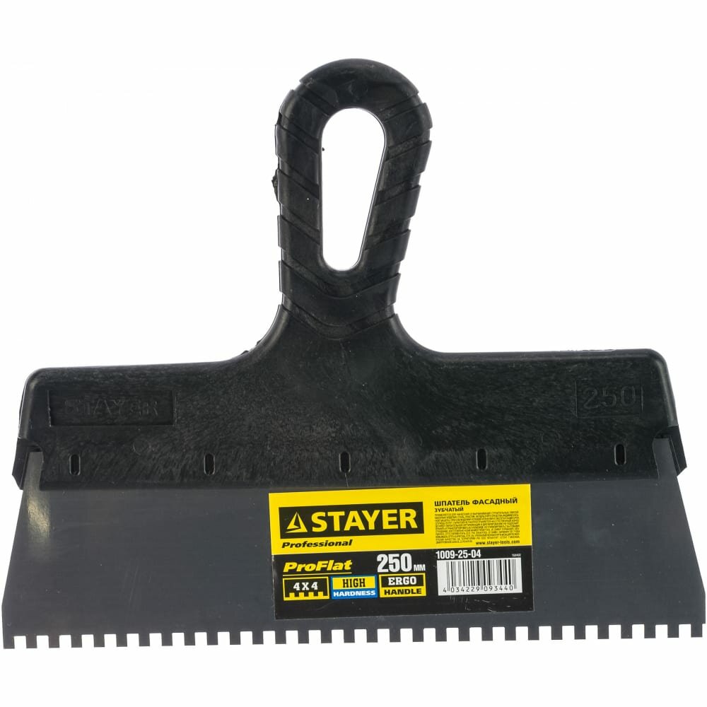 STAYER ProFLat 250 мм, зуб 4х4мм, пластиковая ручка, зубчатый, нержавеющий, Фасадный шпатель, PROFESSIONAL (1009-25-04)